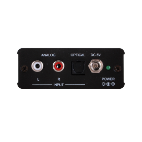 The L/R and Optical Audio to HDMI Bridge is designed for analog or digital audio signal to be send out through HDMI. Allowing immidiate plug-and-play enjoyment over HDMI audio without obstruct. When connecting to a HDMI display a blue screen will appear with a simple OSD to show the current input audio. Supporting digital audio sampling rate up to 192kHz and analog audio sampling rate up to 48kHz.