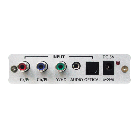This Scaler Box is designed to upscale digital video signal from HD input source to digital HDMI output of wide-range HDTV and PC resolutions, up to 1080p/WUXGA. Besides HD upscaling, the scaler box also converts digital/analog audio signal to digital/analog format, then output to HDMI combining with the video, TOSLink (Optical fiber), and phone jack (L/R audio) simultaneously. This unit has a comprehensive OSD menu that allows user to select a variety of output resolutions and adjust for best picture quality..